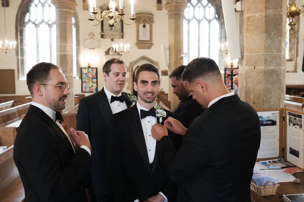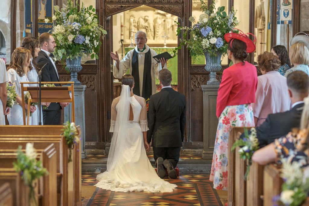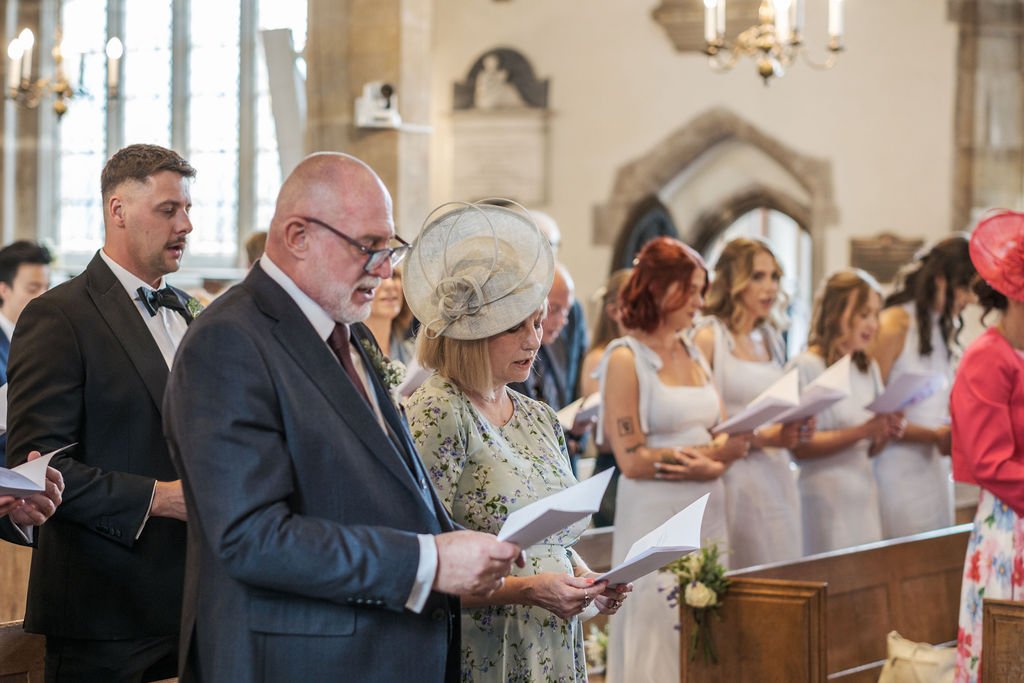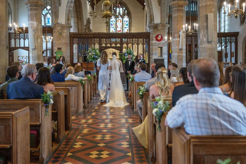 By the time Zita arrived at St Andrew’s Church in Backwell, everyone was already inside, settled into pews and buzzing quietly with that “it’s really happening” energy. The church itself is basically the blueprint for “English village church” – old stone, stained glass and that soft, slightly echoey light that makes everything feel a bit more magical.