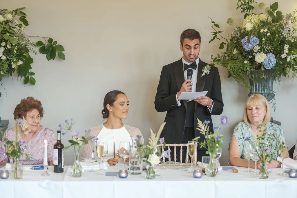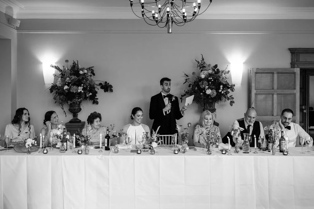 Most of the action happened in the light‑filled Music Room, which opens straight onto the terrace and lawns. It’s one of those spaces that can handle pretty much anything – long banquet tables, classic rounds, or something more relaxed – and it still feels airy and elegant rather than crowded. Speeches, laughs, a few happy‑cry moments… it all landed really nicely in that room.