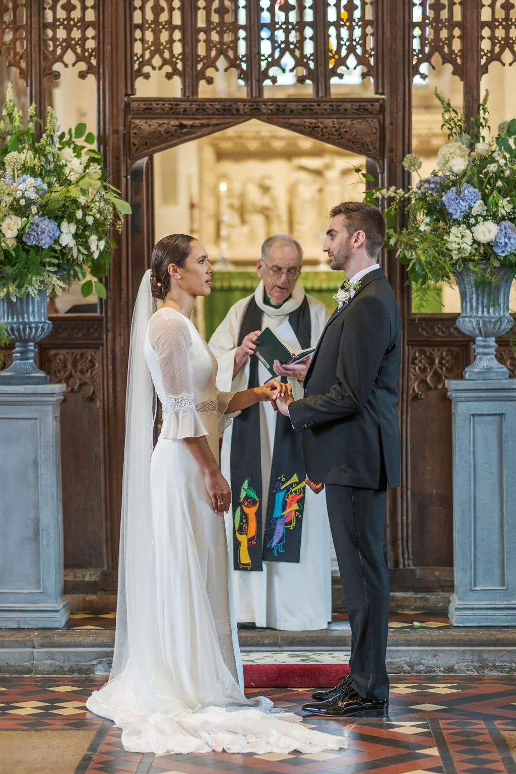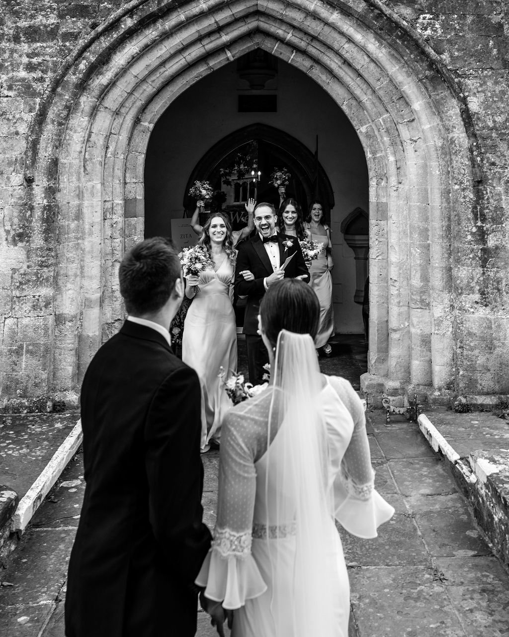 Because guests were already seated, there was this brilliant stillness just outside the doors: a quick deep breath, a last dress check, and then straight into that long walk down the aisle. Inside, the warm light and historic details framed the readings, hymns and vows beautifully, and we tucked ourselves into corners to catch all the good stuff – hand squeezes, happy tears and those fast little glances between them that say far more than the official words.