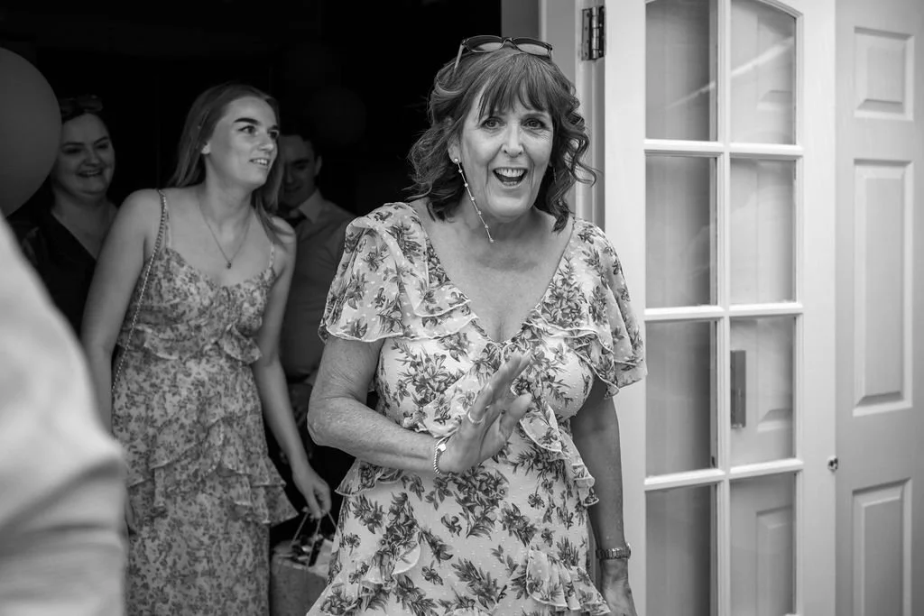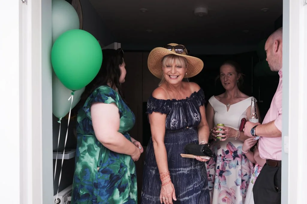 After the ceremony, the rest of my time with them was spent documenting that easy, in‑between part of the day – drinking champagne in the shade, guests chatting in little groups, laughter spilling out across the lawn and cutting cake.
