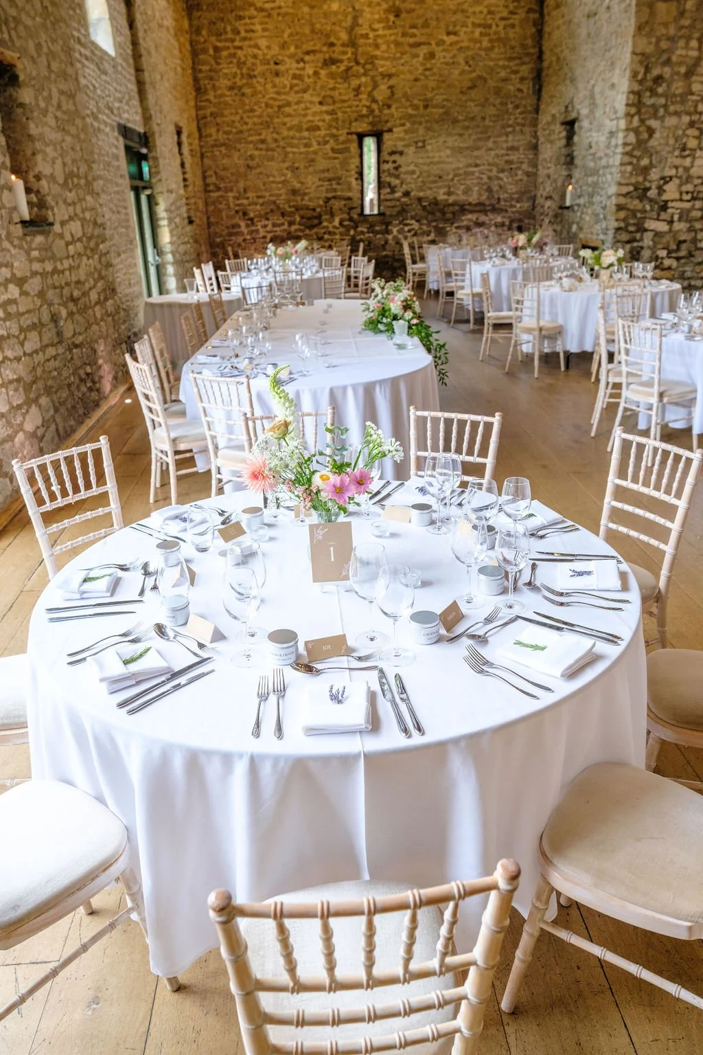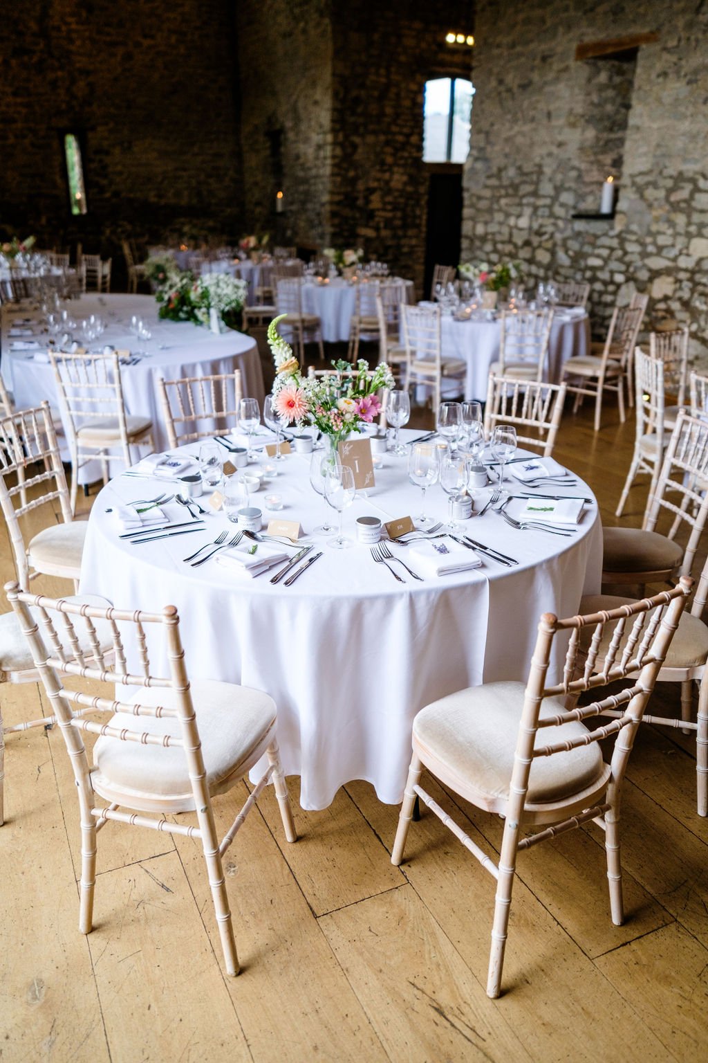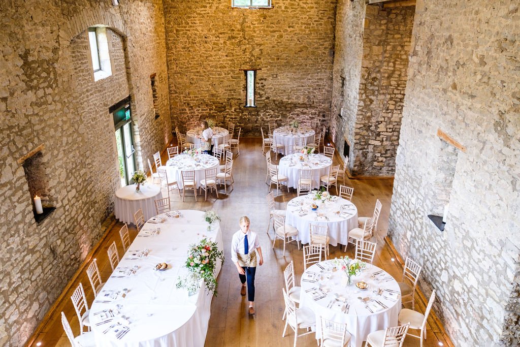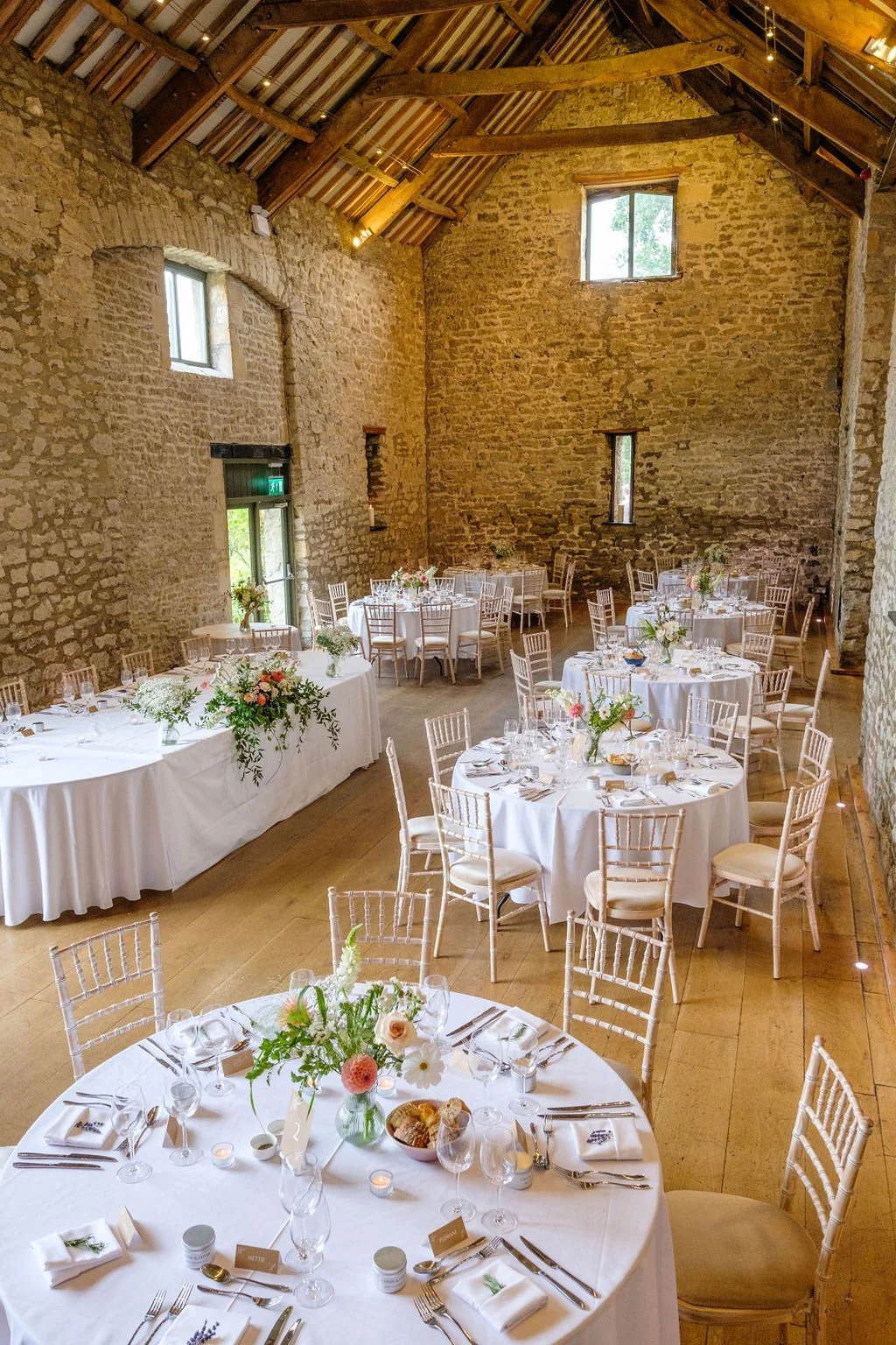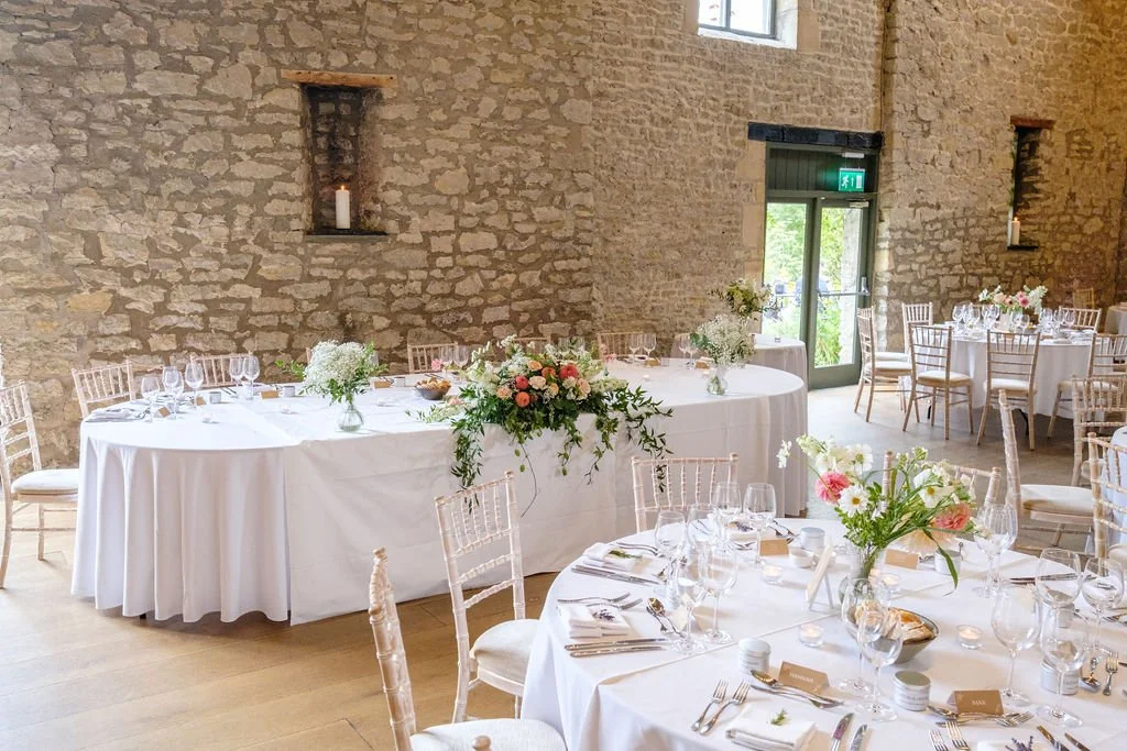 The Tythe Barn is a spectacular stone‑walled barn with rustic beams, high ceilings and space for around 50–150 guests for ceremonies and wedding breakfasts, and up to about 200 for the evening party. Set against far‑reaching countryside views, it’s ideal for couples dreaming of a classic barn wedding that still feels elegant and polished.
