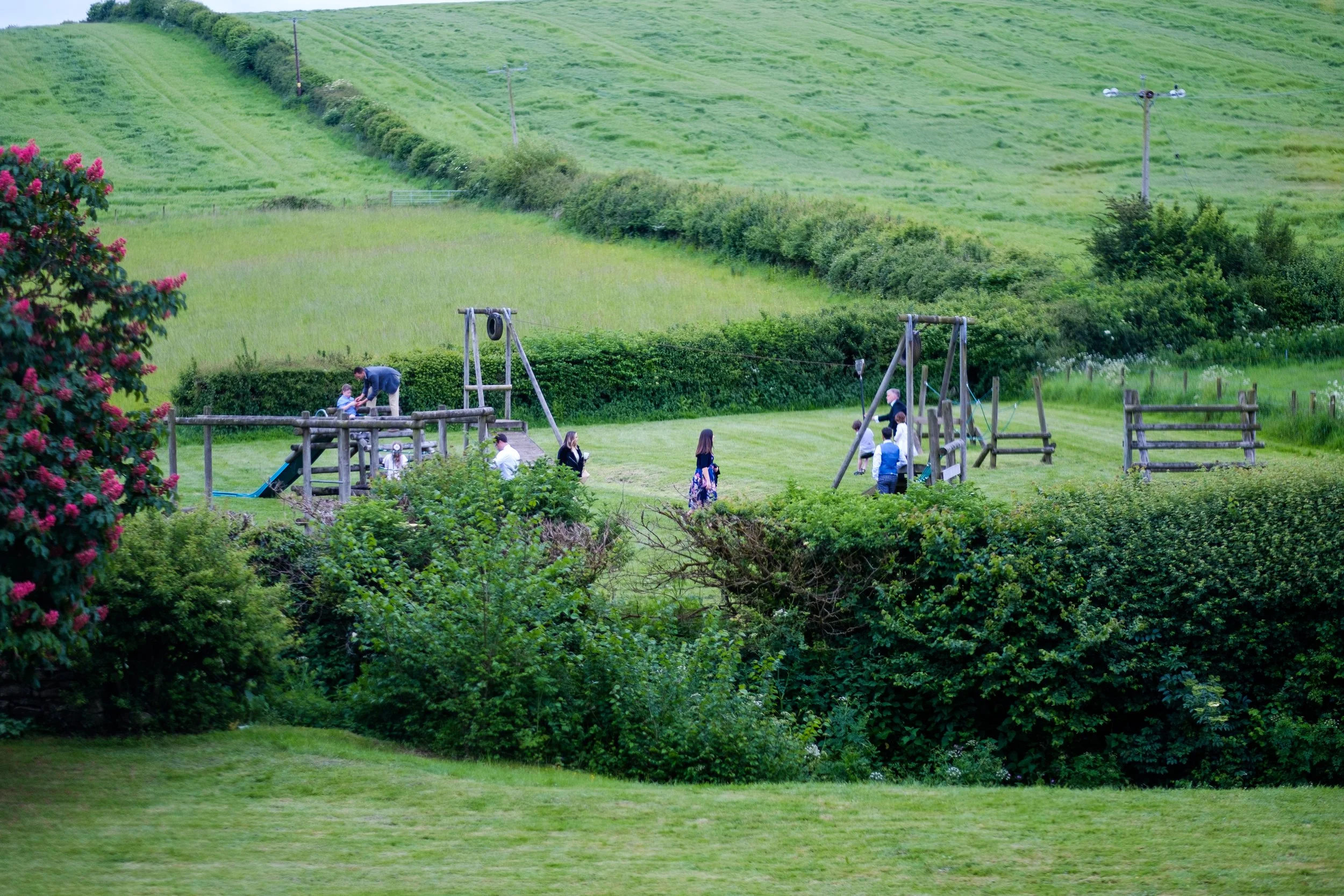 At golden hour, the valley location really comes into its own: the light drops behind the surrounding hills, giving a soft, flattering glow that works perfectly for natural, unforced portraits. Whether couples want a five‑minute walk away from the crowd or a slightly longer wander into the fields, there are endless options for photos that feel relaxed and genuinely “them”.