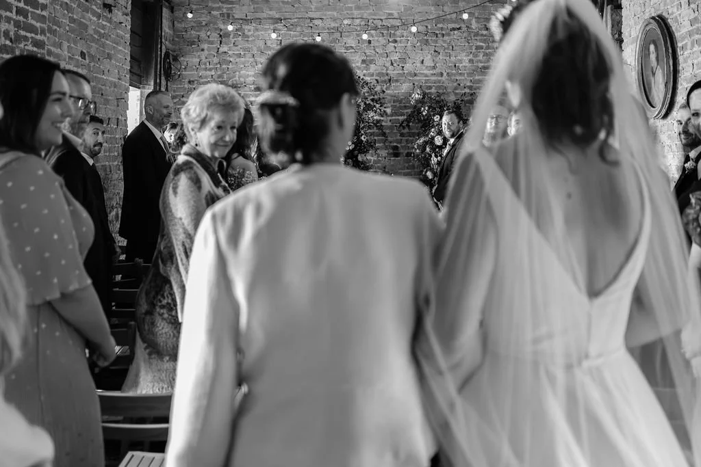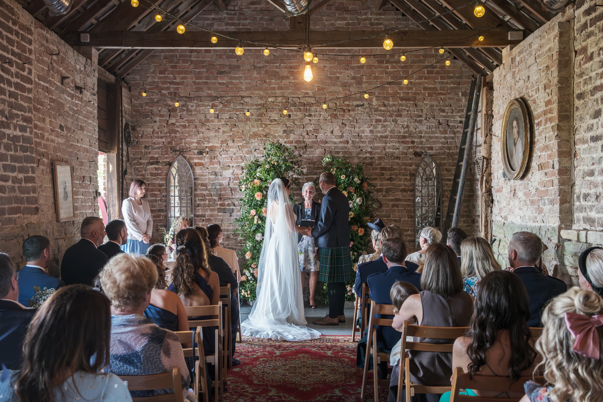 Johnny looked fantastic in his traditional Scottish attire, and with the sound of the bagpipes drifting across the grounds it marked a truly memorable moment. The pipes guided Holly into the Potting Shed, where their loved ones were eagerly waiting. There was a gentle blend of excitement and nerves, but Holly and Johnny’s easygoing nature and warmth instantly put everyone at ease. Their ceremony was a real highlight - held in the charming Potting Shed, a tucked-away gem within the manor’s historic grounds. With its characterful beams, festoon lighting, and eclectic details, the space perfectly reflected their relaxed, laid-back style.