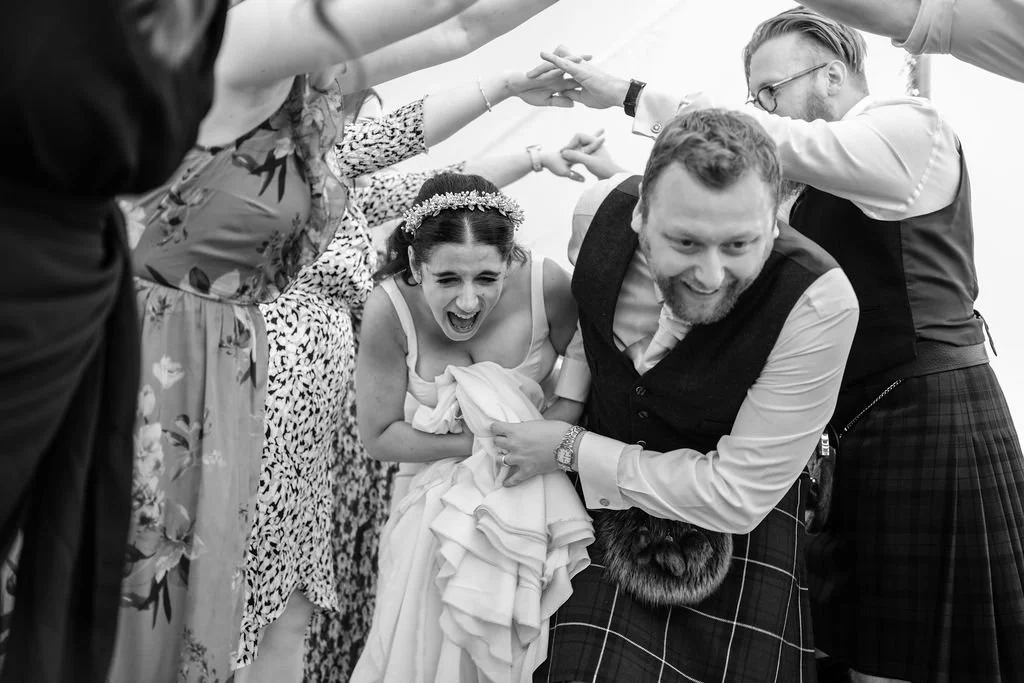 The celebrations then continued under a beautifully stretched marquee in the gardens. To the sound of the bagpipes once again, Johnny and Holly were led to their table, where the moment was celebrated in true Scottish style with a well-earned shot of whisky.
