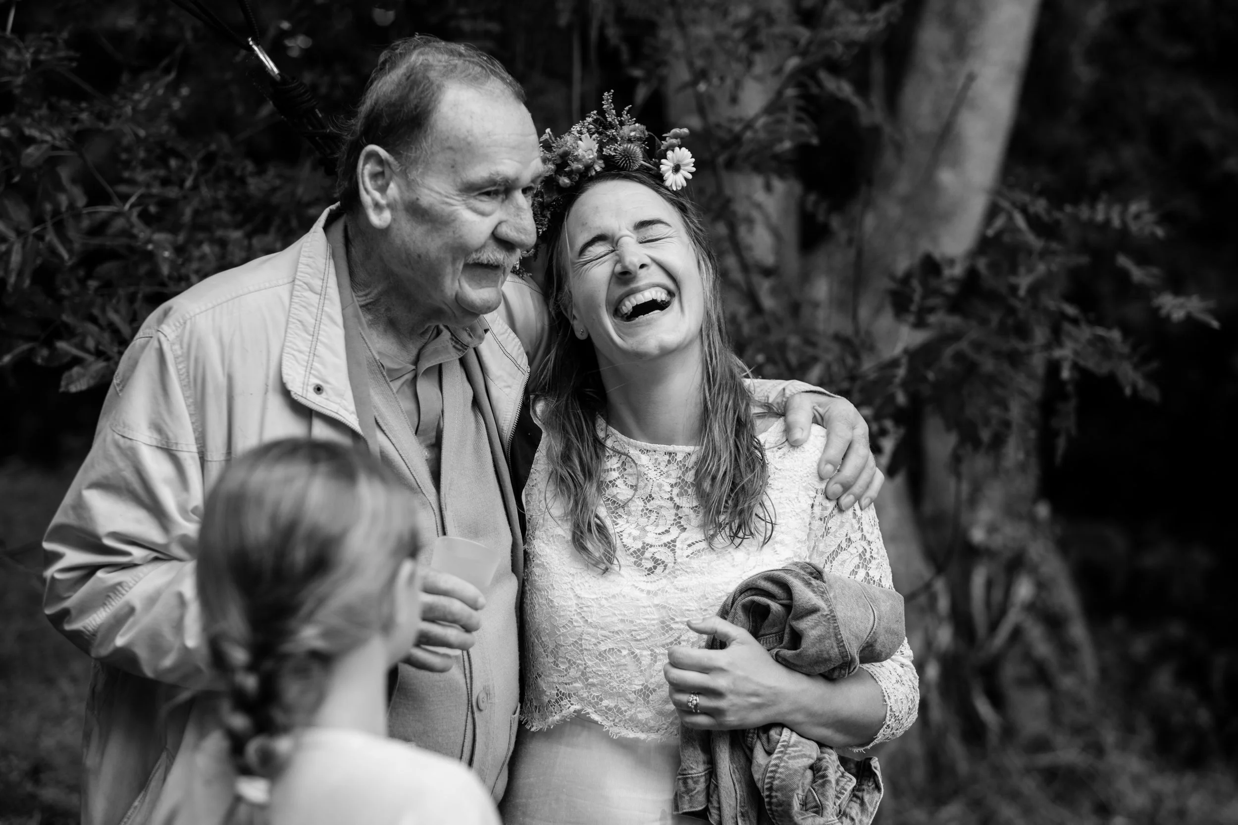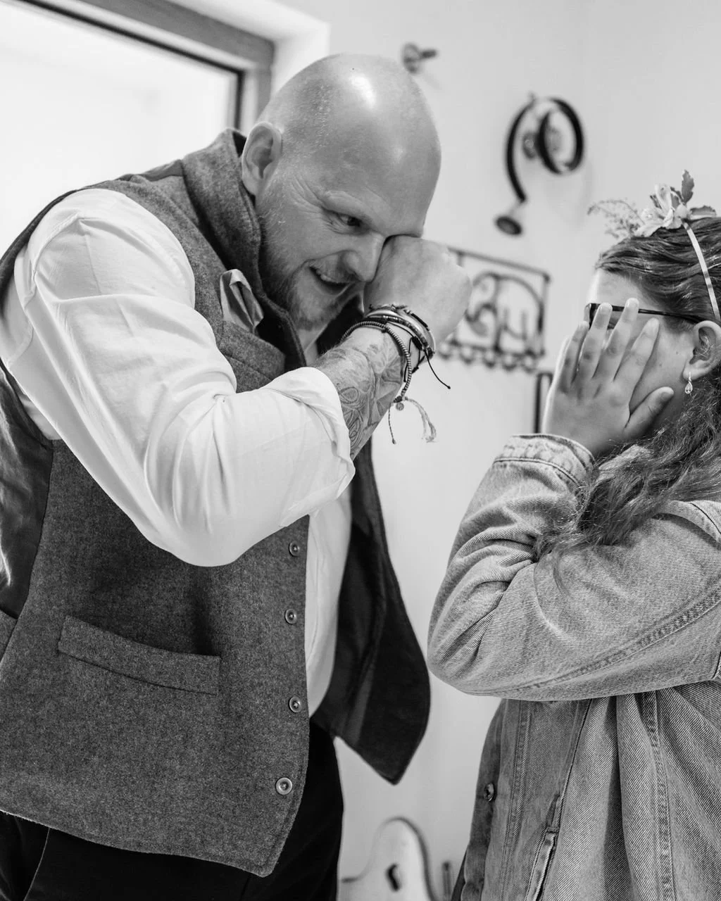 Rebecca and Oliver’s wedding at Higher Holcombe was pure magic — downpour hammering the trees, but not a hint of dampening the emotion that poured out all day, with their four girls right at the core of every beat. We’ve shot woodland spots before as Em & Woz, but this Devon hideaway? It wrapped their story — kids included — in something raw and unforgettable. Different energy every time, same wild beauty.