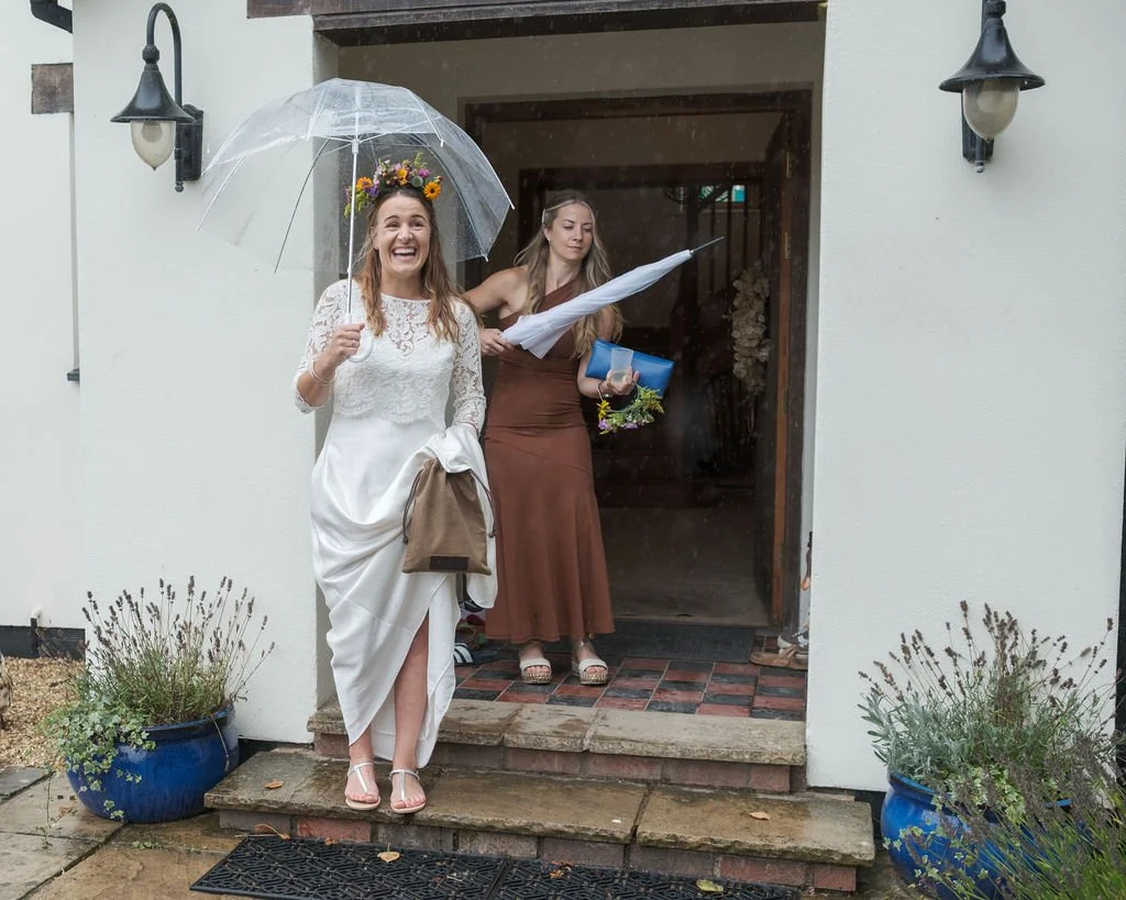 Downpour or shine, Rebecca, Oliver and their four girls made Higher Holcombe theirs — birch church, marquee flow, barn party, musicians tying it all. Blank canvas that bends to your crew. That’s the pull.